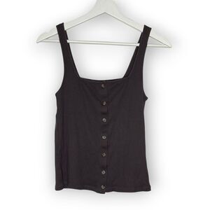 Sanctuary Brown Ribbed Button Up Square Neck Stretchy Tank Top Women’s Medium