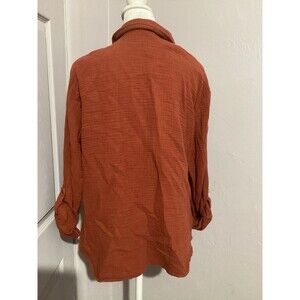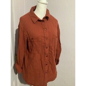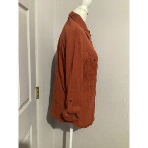 Sanctuary Burnt Orange Long Sleeve Button Up Blouse 100% Cotton Roll Tab M