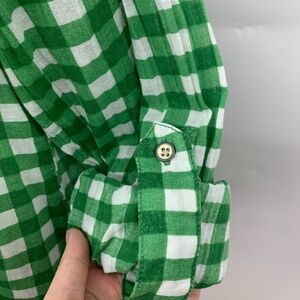 Sanctuary Button Up Shirt Womens L large Grass Plaid Flap Pockets Tab Sleeve Top