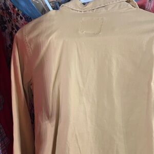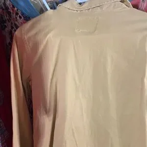 Chic tan jacket with button-up front. Features four practical pockets. Ideal for layering.