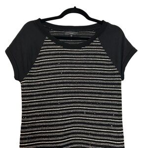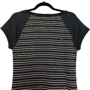 Sanctuary by Anthropologie short sleeve black, silver, and gold matallic and sequin embellished Dress w/ zipper accent on each side of the dress to add a little bit of sexiness to this beautiful dress! Metallic is very on trend and this is a sexy but modest dress that checks many boxes! Size Small measurements are PTP 17 1/2” length 34” sleeve 7 1/2” (Skew Bor25032523)