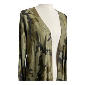 Sanctuary Camo Cardigan Sweater Open front Cammo Duster Comfy Cozy Small Country