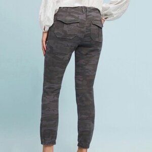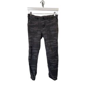 These Sanctuary Camo Jogger Pants offer a blend of style and comfort with their trendy camo pattern and practical features. The elasticized waist and ankles, along with functional pockets, make these pants both fashionable and versatile for casual outings or relaxed days at home.