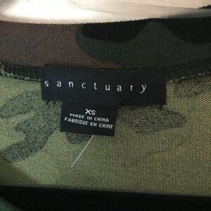 Sanctuary Crew Neck Pocket Pullover Sweatshirt in green camouflage. A cozy knit lightweight sweatshirt that features a front patch pocket. Style: XT0011K1R Fiber: Polyester & spandex blend. MSRP $29.97 NWOT New without the tags. Women's size XS extra-small. Measurements: Chest: 44" Waist: 42" Sleeves: 20" Length: 23.5"