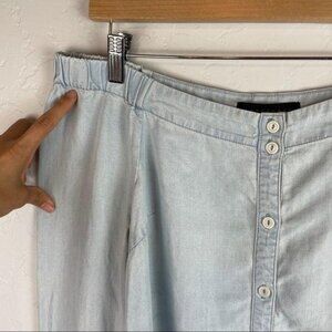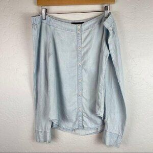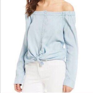 Sanctuary Chambray Off-The-Shoulder Button Down Long Sleeve Blouse Women's Sz XS