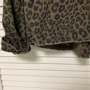 Sanctuary Cheetah Trucker Jean Jacket with Raw Hem. Size Medium / M.