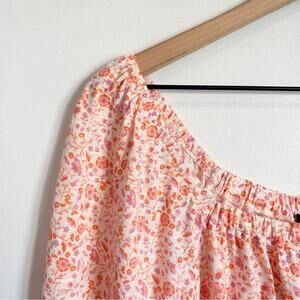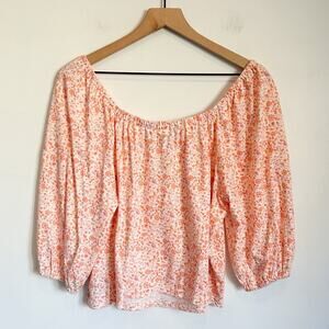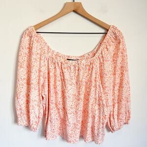 Bring a burst of sunshine to your wardrobe with the Sanctuary Chloe Floral Top in a vibrant orange and pink floral print! This charming top features a flattering square neckline, comfortable quarter-length sleeves with elastic detail, and a soft, stretchy fabric for a relaxed and easy fit. The eye-catching floral pattern boasts shades of bright orange and pink, perfect for injecting some personality into your look. Whether you pair it with jeans for a casual weekend outfit or dress it up with a skirt for a fun night out, this versatile top is sure to become a go-to favorite. In great condition.