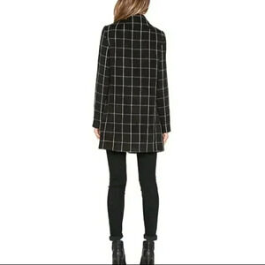 Sanctuary City Coat Black and White Check Pockets Collarless Size Medium NWT