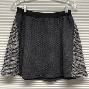 Sanctuary Clothing Gray Black White Tweed Knit A Line Circle Mini Skirt with pull on elastic waistband, lined.