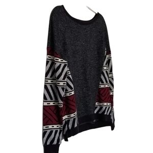 Sanctuary Colorblock Gray Sweatshirt Sweater with Knit Aztec Print Accent Size Small. Ribbed neck hem wrists ~Crew neck ~Hi low hem ~Side slits.
