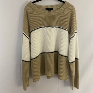 Sanctuary Colorblock Oversized Knit Sweater XL Beige White Boho Chic