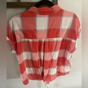 Sanctuary Coral Checkered Blouse Shirt Size Large