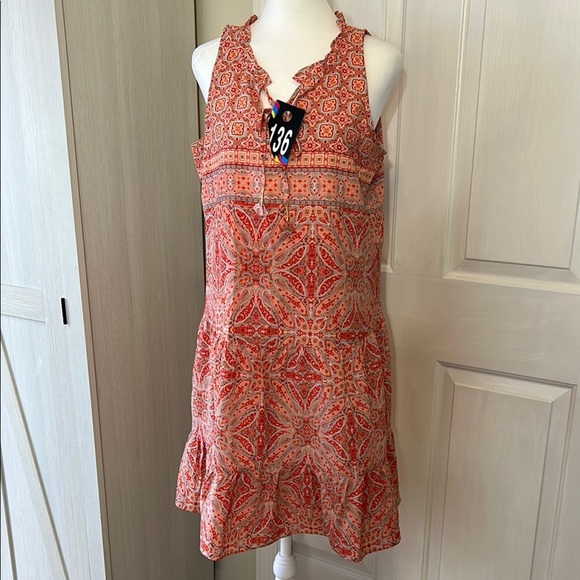 Sanctuary Coral/Grey Print Oversized Tiered Ruffled Sundress Sz S