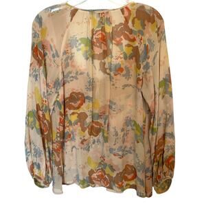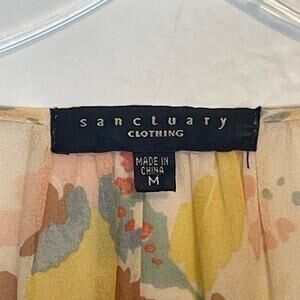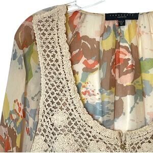 Sanctuary Cream Floral Boho Top Women's Medium Crochet Trim Peasant Blouse