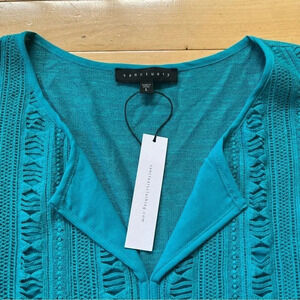 Sanctuary Crochet Sleeveless Top NWT Women’s L Large Blue Split Neck Lined Tank
