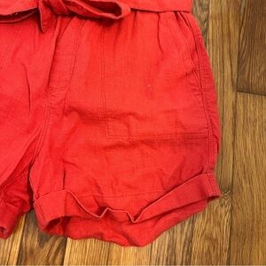 Good condition, minor wear. Sanctuary. Daily paperbag tie waist short. red/ orange color. A summer staple from Sanctuary features a removable belt, paperbag waist, and an elastic waistband that gives this pair of shorts the perfect fit. Size small. Missing material tag. Waist 13.5” Inseam 3” Front Rise 9”. All measurements are approximate and taken lying flat. Smoke free home. No trades, offers welcome.