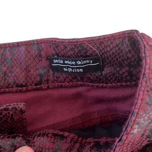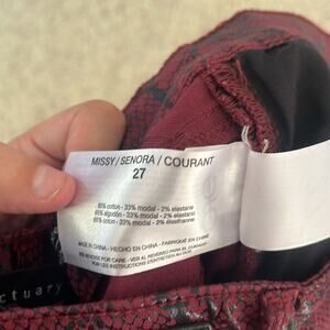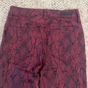 Keywords: coated jeans, faux leather pants, snakeskin print, skinny ankle pants, rocker chic, edgy style, red black denim, sanctuary jeans 27, high rise coated denim, festival jeans