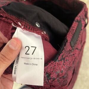 Sanctuary Denim Ankle Skinny Jeans Red Black Snake Coated Pants 27 Y2K Goth