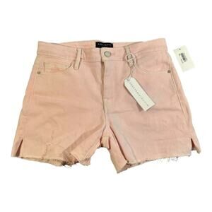 Keywords: Sanctuary Denim, pink shorts, cutoff shorts, distressed denim, frayed hem, summer fashion, casual wear, beachwear, festival style, boutique shorts, size 28, side slit hem