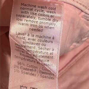 Distressed Faded Pink Shorts, 5 pocket front, zipper and button closure, raw/cut off hem