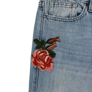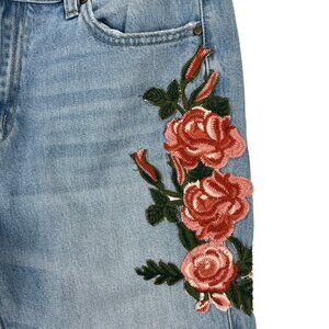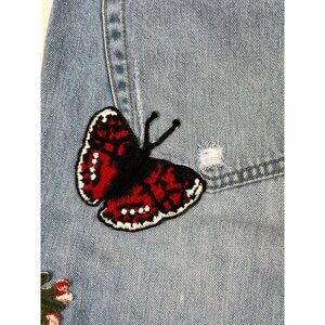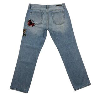 Sanctuary Distressed Cropped Boyfriend Jeans Floral Butterfly Applique Size 28
