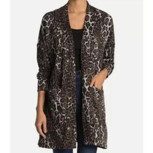 Sanctuary Duster Velvety Cheetah Print Camp Pocket Cardigan