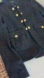 This is a size small black military-style jacket with gold buttons, shoulder epaulets, and pleated front pockets. It has a structured design and is often described as a schoolboy or prep-style blazer. The jacket is made by the brand Sanctuary, which creates clothing for the modern woman.