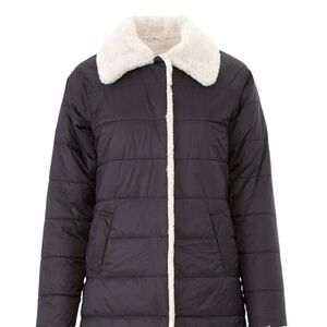 Sanctuary Faux Fur Nylon Jacket Black Cream 100% nylon Faux fur 100% polyester Two pockets fur side Two pockets nylon side Missing size tag, but fits standard size S