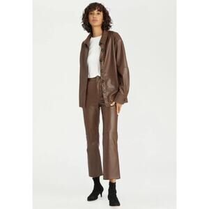 Sanctuary Faux Leather Kick Crop Pant US 27 Brown High Rise Ankle Flare Vegan