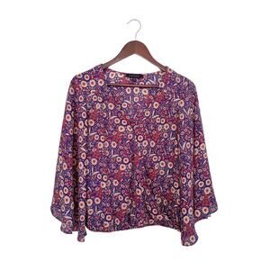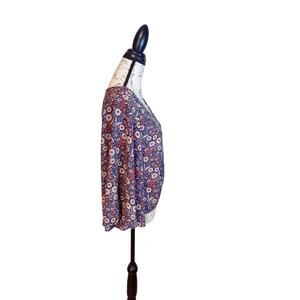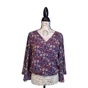 Sanctuary Flared Sleeve Boho V-Neck Navy Red Blouse Size S