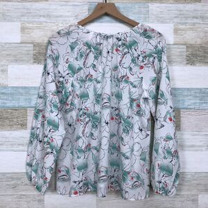 Sanctuary Floral Peasant Tie Neck Blouse White Green Tassel Casual Womens Medium