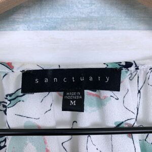 Sanctuary Floral Peasant Tie Neck Blouse White Green