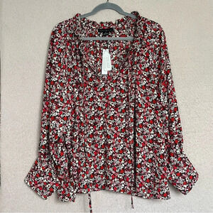 Sanctuary Floral Peasant Top Blouse-Red, Pink & White-Women’s 1X-Cottagecore-NEW