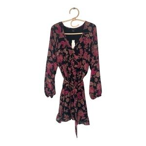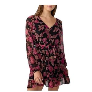 Sanctuary Floral Print V-Neck Long Sleeve Mini Dress Sensation Chiffon Dress
