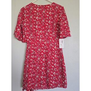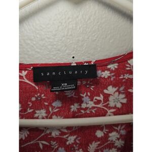 Keywords: Sanctuary, wrap dress, floral dress, red dress, short sleeve, ruffle sleeve, v-neck, casual dress, bohemian, boho chic, summer dress, spring dress, XS, extra small