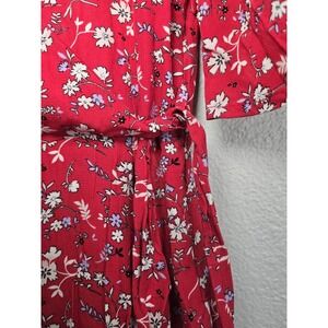 Sanctuary Floral Print Wrap Dress Ruffle Short Sleeve Red XS