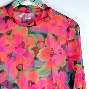 Sanctuary Floral SHEER Mesh Mock Neck Mini Dress, Sz XL