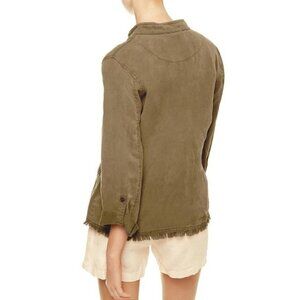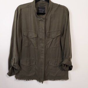 Size XL Sanctuary Frayed Hem Green Utility Jacket. 100% lyocell. Long sleeve with tabbed snap buttons. Front covered snap placket. Chest and front flap pockets. Pit to 22” Length 26.5” Excellent pre-owned condition.