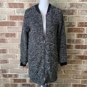 Sanctuary Gray & Black Silver Tinsel Knit Zip Down Cardigan Sweater Size Medium