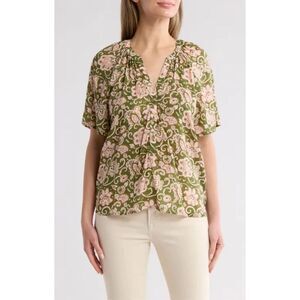 Sanctuary Green and Pink Floral Soft Button Down Blouse top Size Small. New without tag