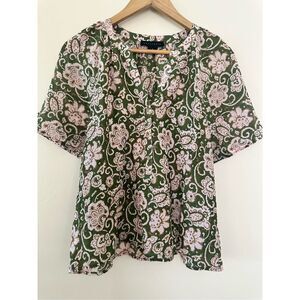 Sanctuary Green and Pink Floral Soft Button Down Blouse top Size Small