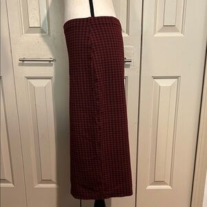 Chic black/burgundy pencil skirt with subtle grid pattern. Perfect for versatile styling.