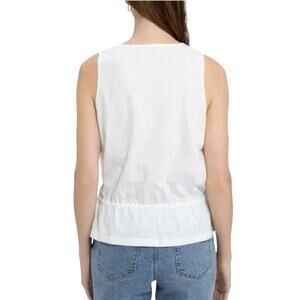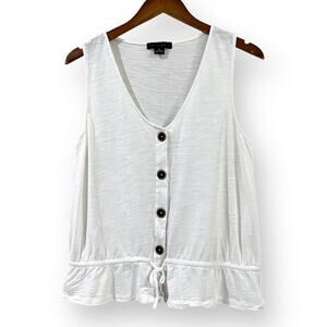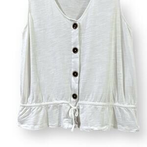 Sanctuary Heartstrings Button Tank White Size XL Ruffle Hem Drawstring