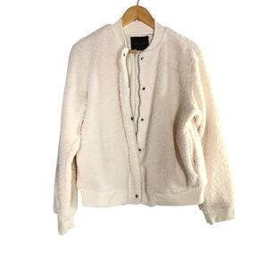 Sanctuary Imperial Bomber Jacket Faux Shearling Fleece Ribbed Trim Cream White M