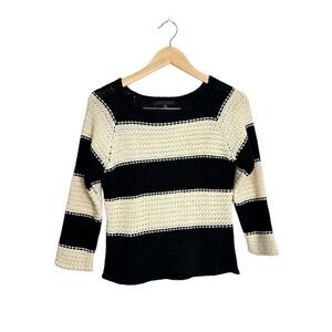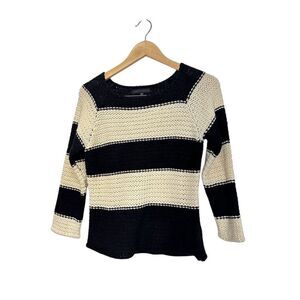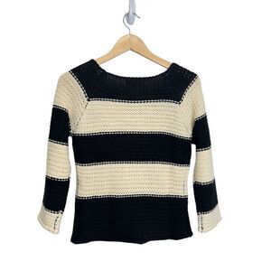 Sanctuary Knit Sweater Small Striped Black Cream Pullover Chunky Wool Blend