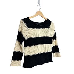 Sanctuary Sweater Womens Small Striped Cream/Black Pullover Chunky Knit