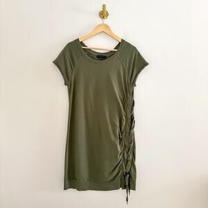 Sanctuary Lace Up Short Sleeve Round Neck Mini T-Shirt Dress Green M