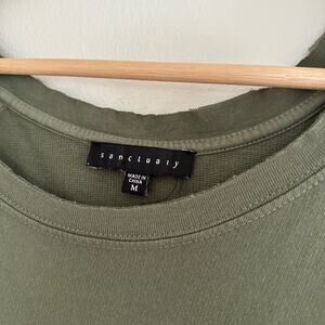 Details: Sanctuary Lace Up Short Sleeve Round Neck Mini T-Shirt Dress - Size: M- Color: Green- Material: 100% Cotton- Features: Short sleeve, round neck, pullover, lace-up detail, machine wash, ribbed collar and hem, comfort, breathable, casual.