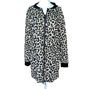 Sanctuary Leopard Print City Topper Long Lined Zip Up Jacket Cardigan Size M