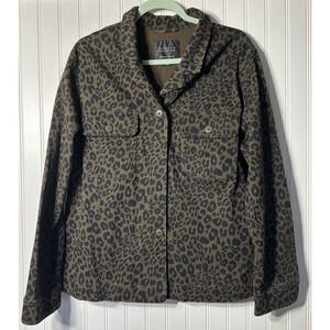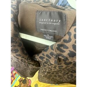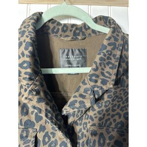 Stylish leopard print jacket by Sanctuary. Features button closure and front pockets. Perfect for a chic look.